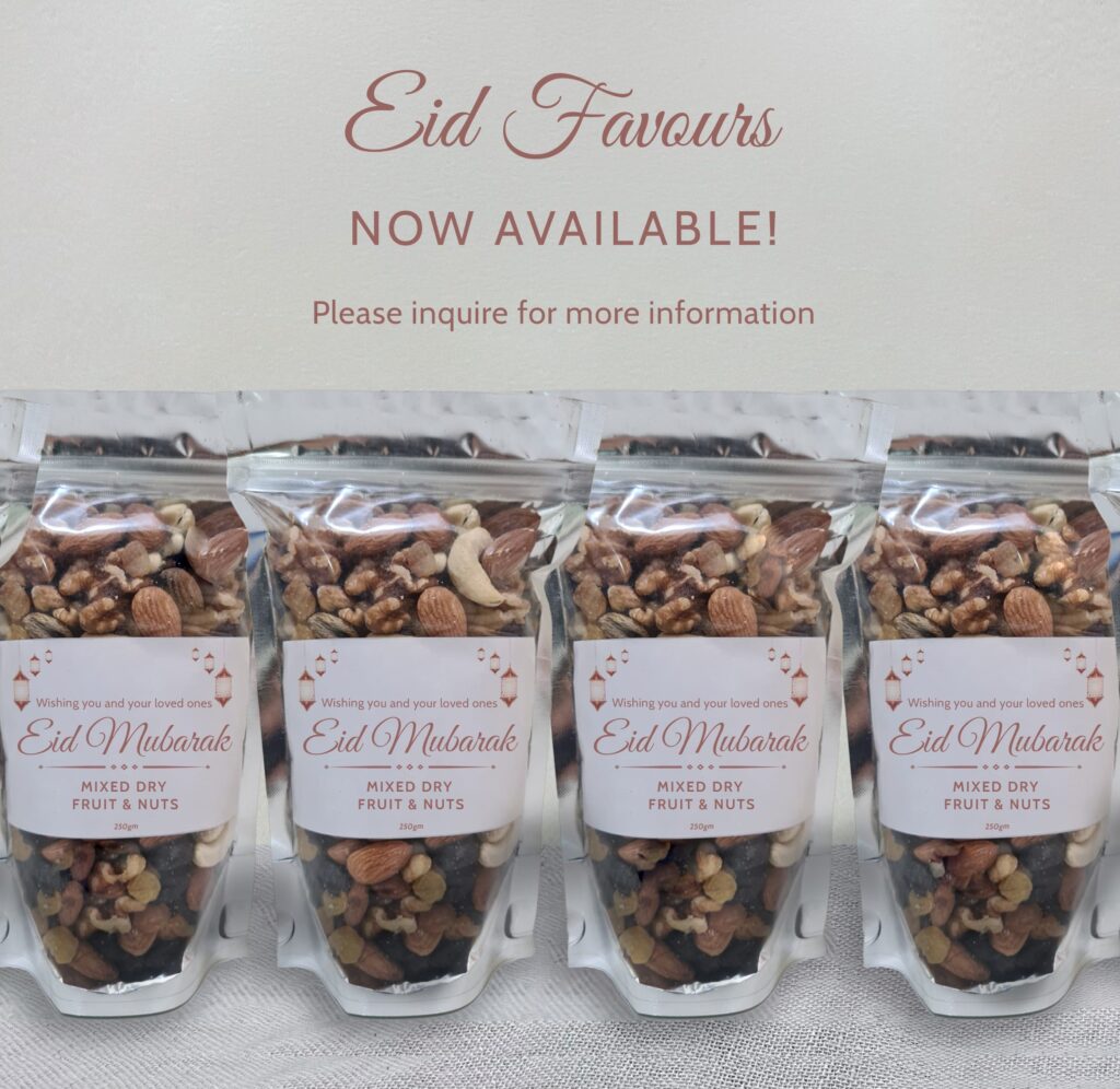 Make your wedding day extra special with our custom wedding gifts. From elegantly packaged sweets to exquisite nut assortments, we offer a variety of options to suit your theme and preferences. Add a personal touch with custom labels and packaging.
